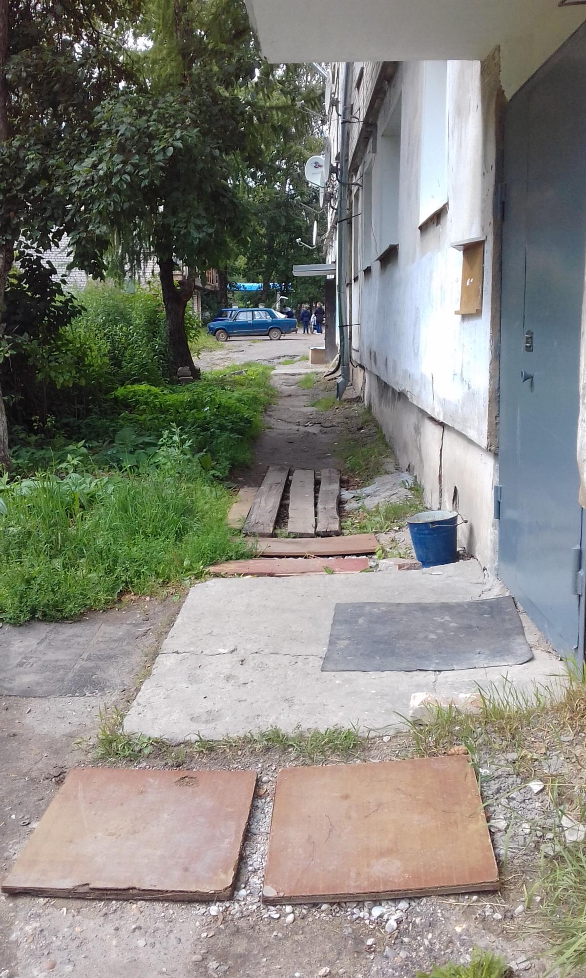 К слову, дворовая территория дома нуждается в ремонте, все лето лужи стоят возле подъезда, отсутствуют тротуары и дорожки.