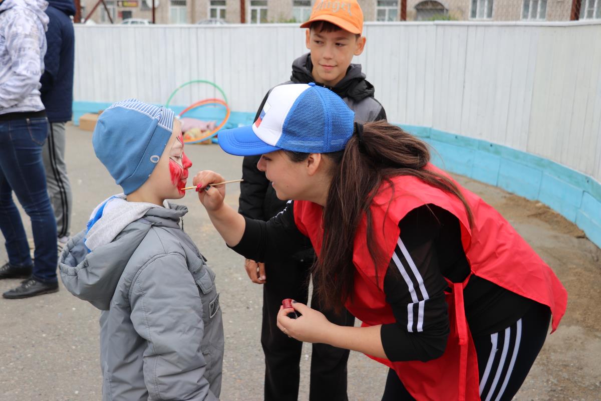 Праздник начался с работы творческих площадок, волонтеры-аниматоры, работники ДК «Металлург» предлагали участникам сразиться в шашки на огромной красочной доске, поиграть в крестики-нолики, классики, морской бой, сделать яркий аквагрим.