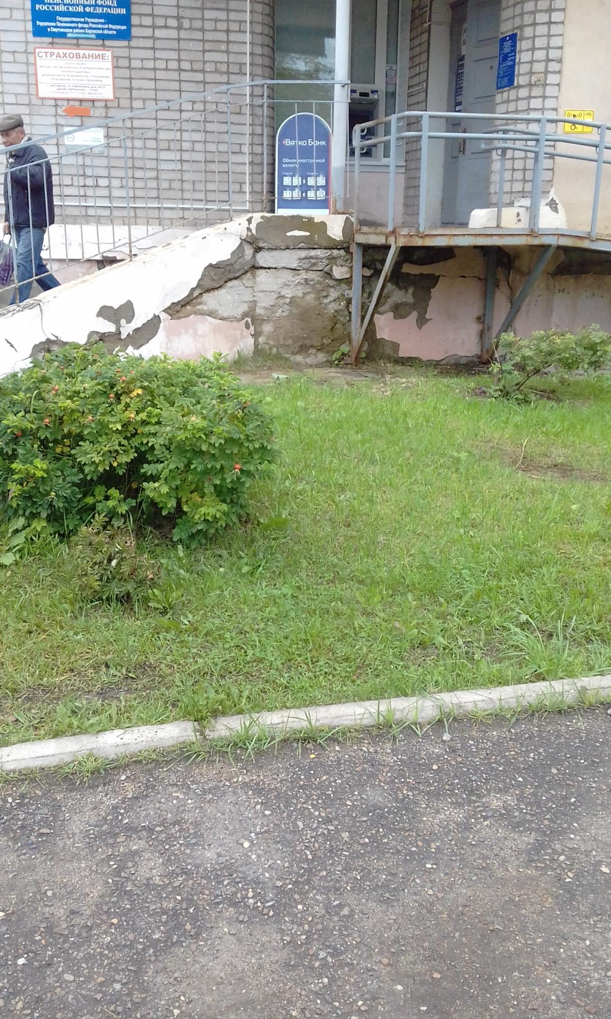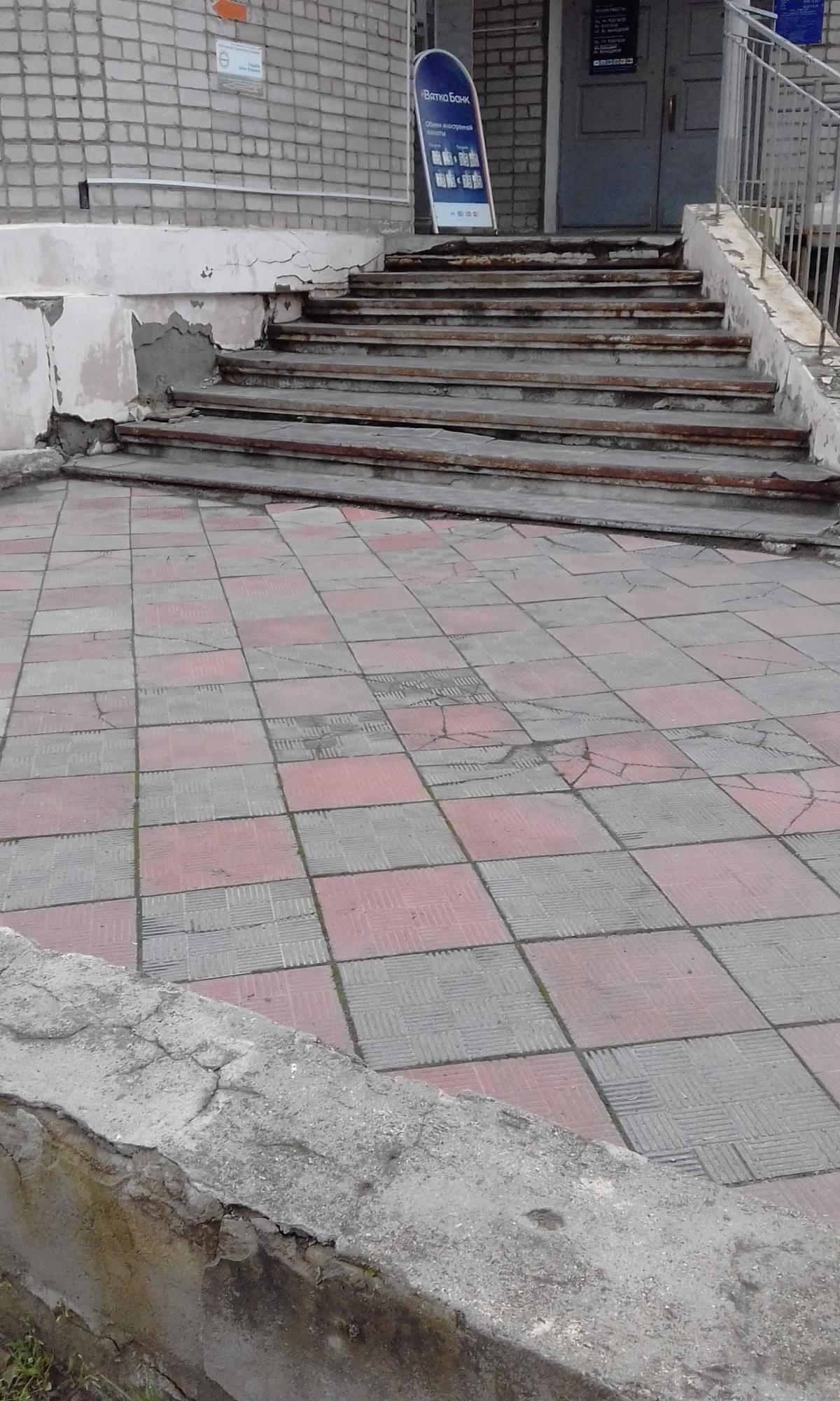 Входная группа здания по улице Коковихина, 26 медленно, но верно разрушается – плитка потрескалась, сыплется штукатурка, начал крошиться кирпич. Цоколь, покрытый трещинами, придает зданию неухоженный вид.