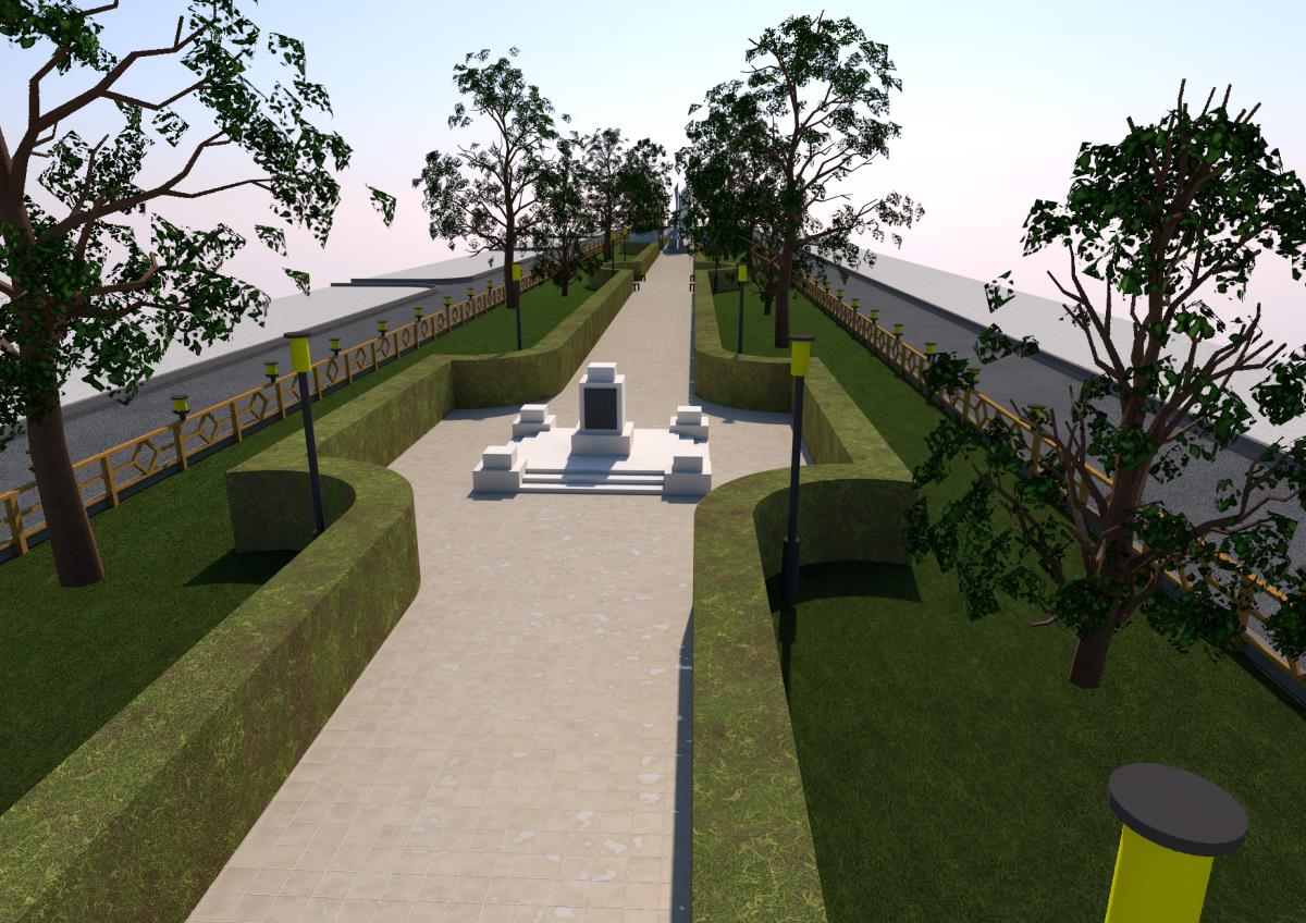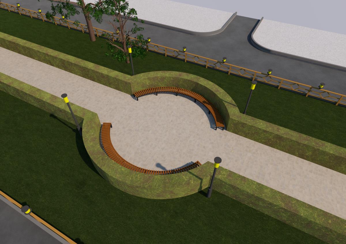Между существующими памятниками появится круговая зона: в ней предлагается установить стелу и информационные стенды. Для комфортного пребывания в аллее будут созданы парковые скамьи в виде полукруга, которые подчеркнут ландшафтную задумку.