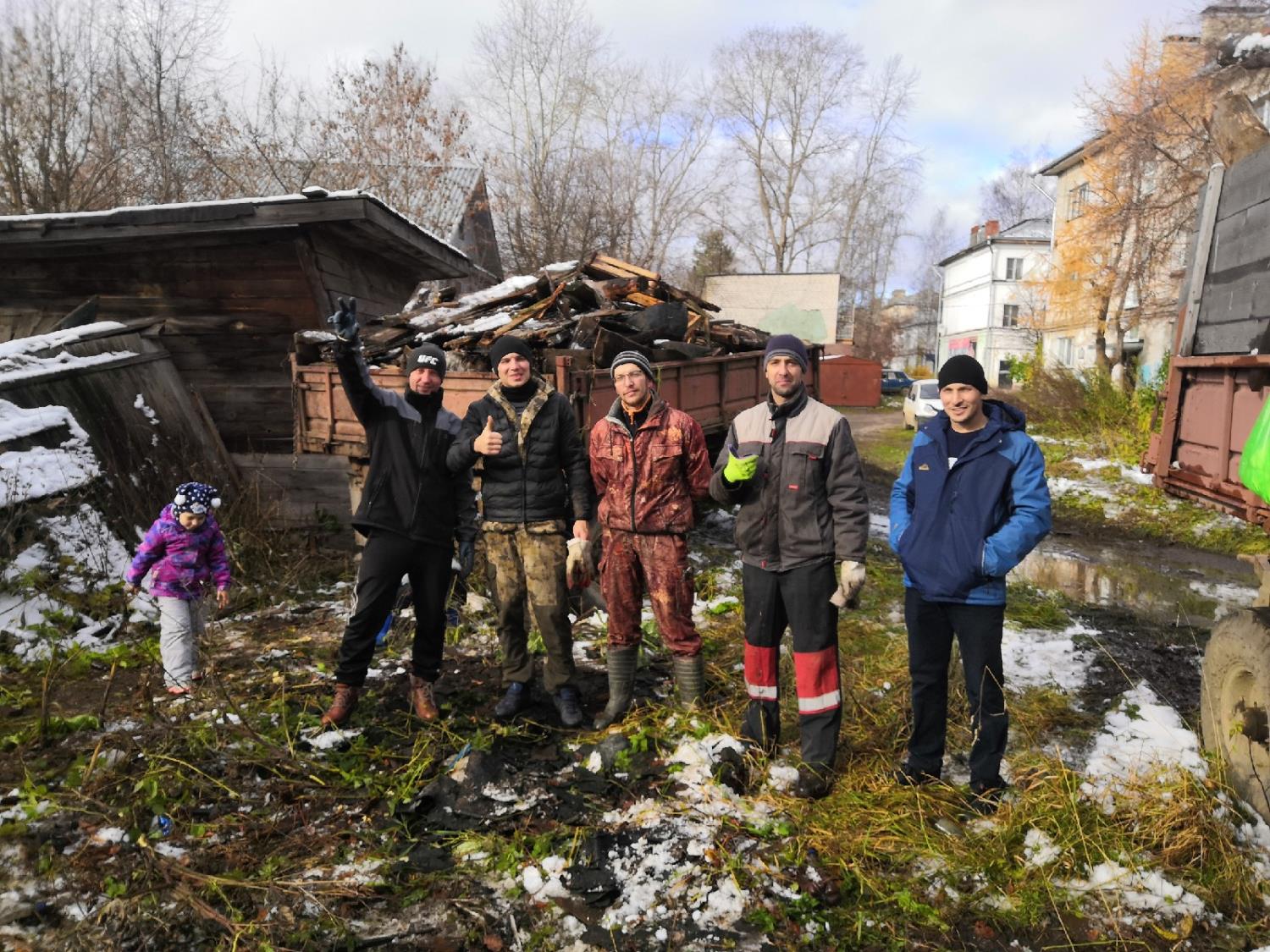 Горожане обратились к депутату А.С. Ильину с просьбой помочь в благоустройстве. Во дворе МКД скопилось много мусора из-за разбора ветхих строений, которые были возведены несколько десятков лет назад. Старые сараи постепенно разбирают и мусор вывозят на средства Омутнинского металлургического завода. Организовали помощь депутат и Союз молодежи. Молодые металлурги и жители дома провели первый субботник.
