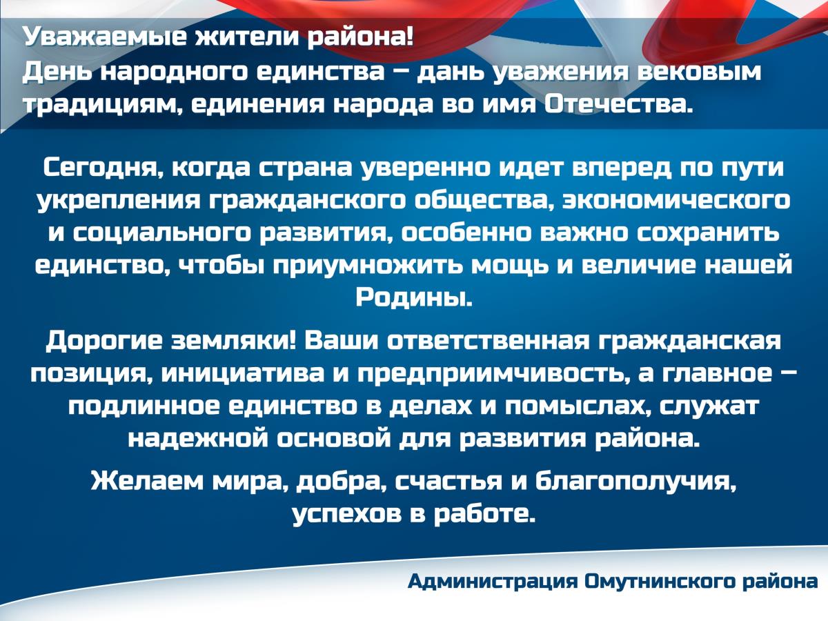 Поздравление с Днем народного единства администрация Омутнинскоого района