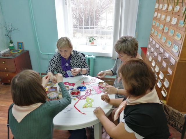 Воспитанницы студии рукоделия "Мастерская чудес" готовятся к групповой отчётной выставке работ, которая будет оформлена в духовно-просветительском центре Омутнинска к Вербному воскресенью.
