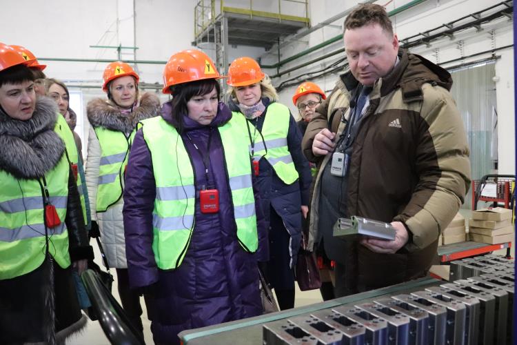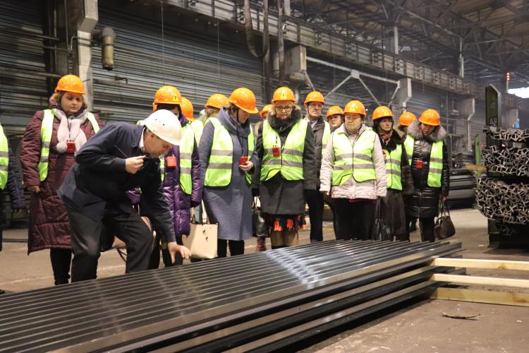 Педагоги посетили цеха лифтовых направляющих и машиностроения. Начальник отдела кадров Александр Запольских рассказал экскурсантам о модернизации производства, возможностях получения профильного образования по целевым направлениям от предприятия, стажировке заводчан за границей, повышении квалификации специалистов и социальной поддержке металлургов.