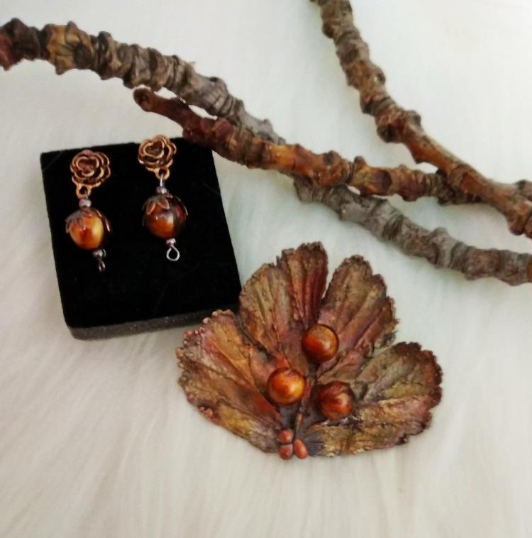 В коллекции Марии – более сорока эксклюзивных украшений. Броши, серьги, декоративные шпильки, подвески, кулоны – увековеченные металлом листья, веточки и даже кусочки коры смотрятся неповторимо и оригинально.