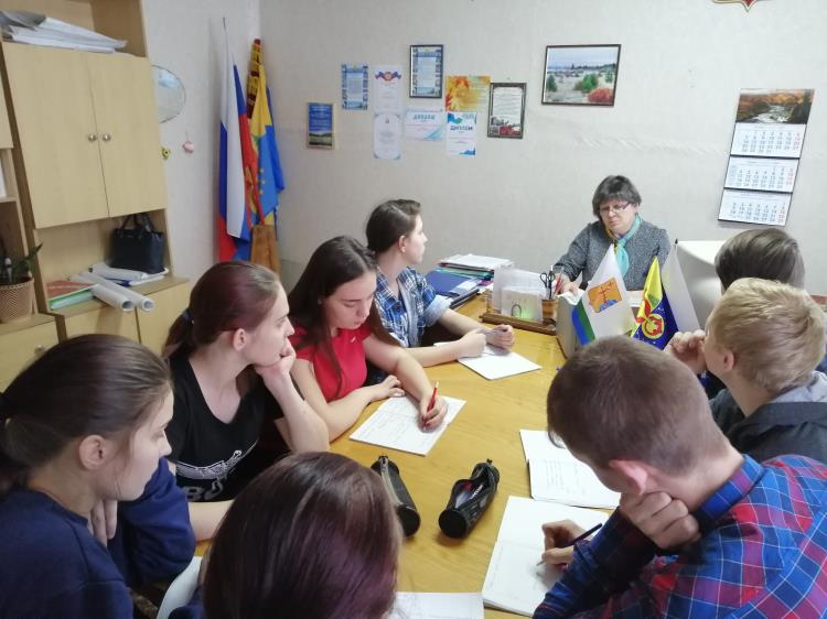 Встреча с учащимися состоялась в рамках школьной программы. На уроках обществознания с учителем О.С. Андрейцовой ребята изучили основы конституционного строя РФ, а практическое занятие по теме «Местное самоуправление» прошло в кабинете главы администрации.