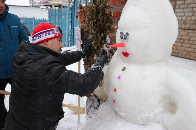 Сегодня, 21 декабря, школьники, педагоги, родители вместе с шефами из цехов и подразделений градообразующего предприятия лепили снеговиков. Фигуры из снега разных форм, размеров и расцветок разместились на дорожке вдоль транспортного цеха, за зданием заводоуправления.