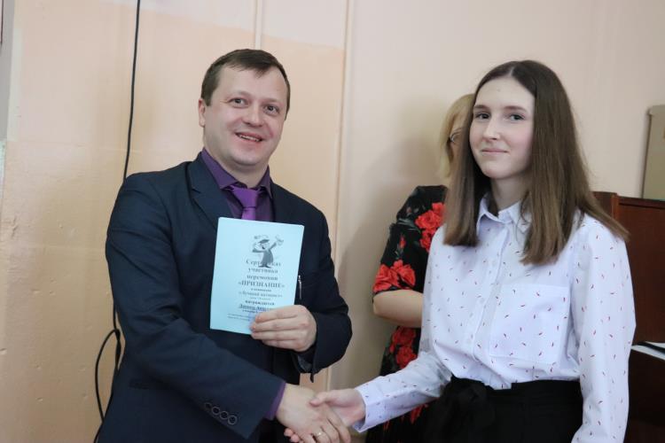 Сегодня в средней школе № 6 Омутнинска состоялась торжественная церемония вручения ежегодной школьной премии «Признание». Поздравить номинантов и победителей, а также вручить небольшие подарки пришли депутаты Омутнинской районной и городской дум, представители цеха стальных фасонных профилей Д.Н. Чувашев и А.В. Гирев.