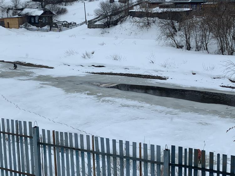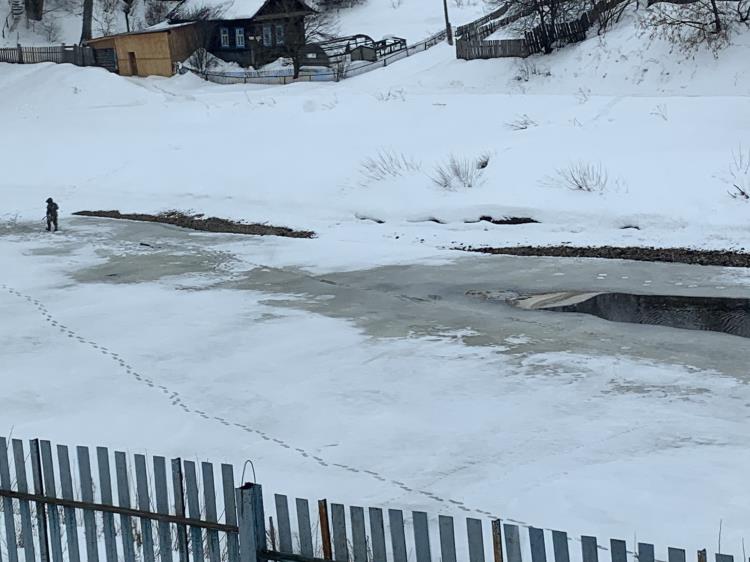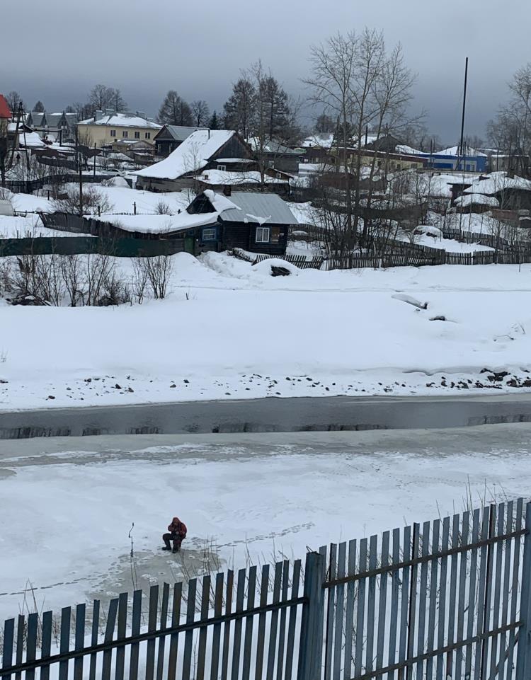 Речной лед на вид крепкий, но местами уже видны промоины, поэтому стоит осознавать опасность такой рыбалки: не выходить на лед в одиночку и соблюдать правила поведения на льду.