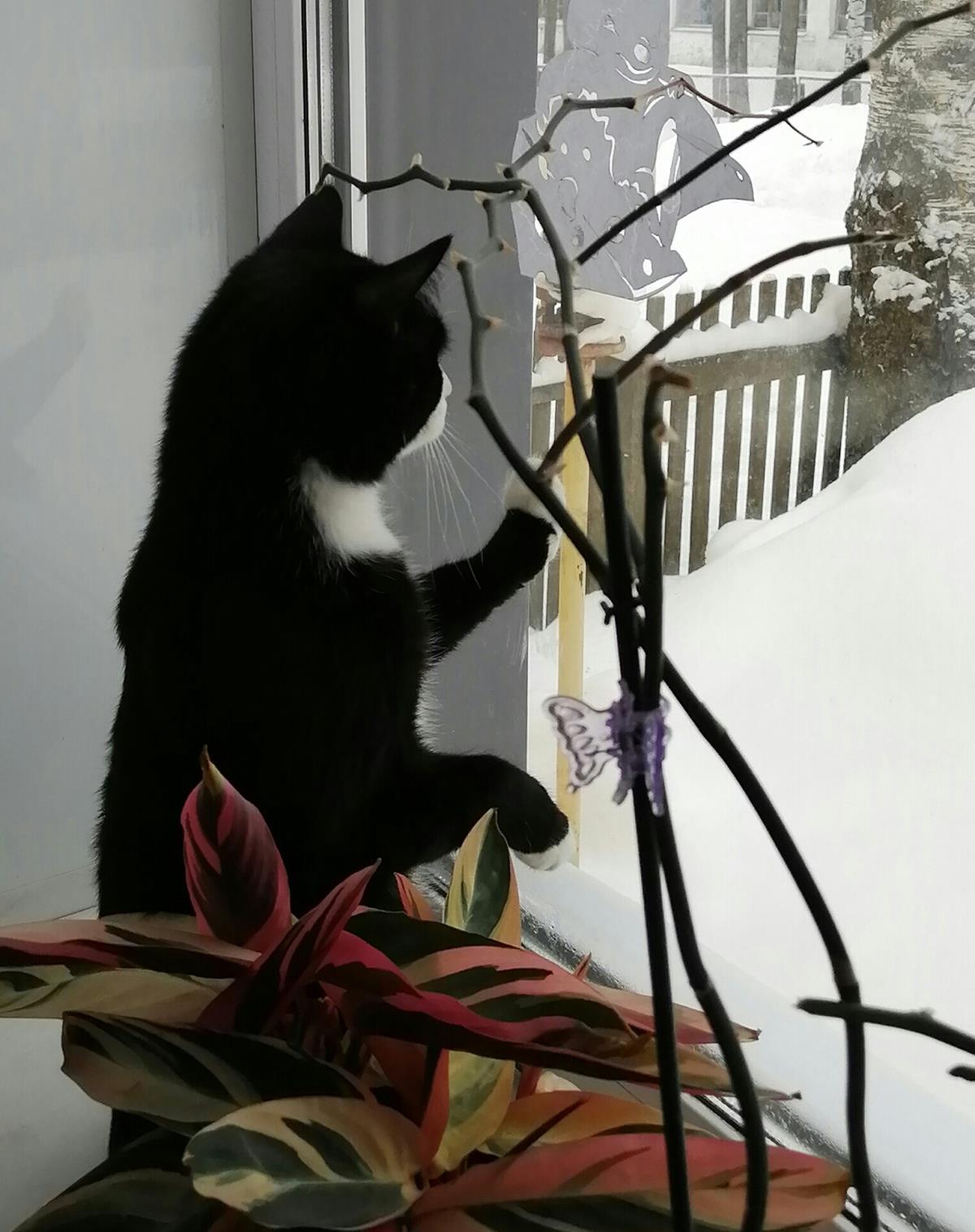Кот Буся любит смотреть в окно, наблюдать за птицами. Он игривый, ловкий, красивый. Мы его очень сильно любим.