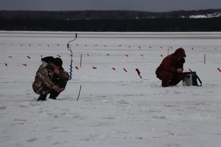 Более двадцати человек из Омутнинска, Восточного и Черной Холуницы вышли на лед в 9 часов утра. Время пошло, и вскоре один из рыбаков первым поднял на лед небольшого «зубарика».