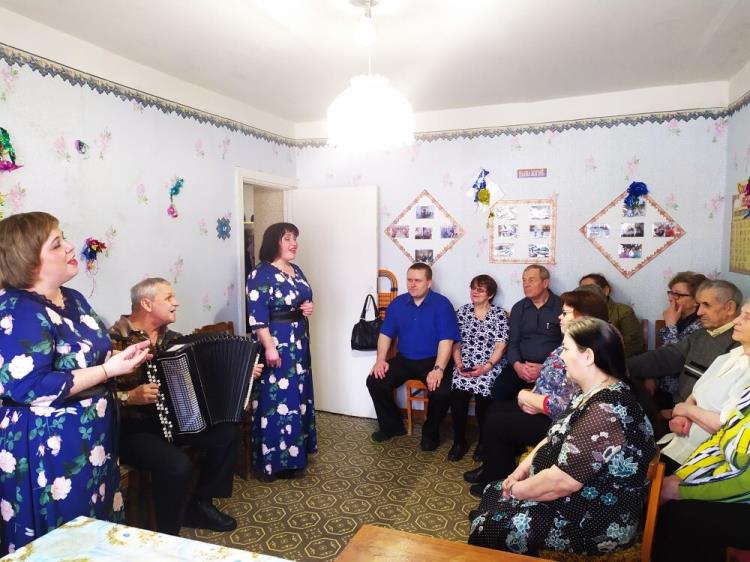 В гости к участникам общества приехали солистки трио «Гармония» Дворца культуры «Металлург» Олеся Чушникова и Наталья Ельцова и руководитель коллектива, гармонист-аккомпаниатор и исполнитель, заслуженный работник культуры РФ Анатолий Сланчев.