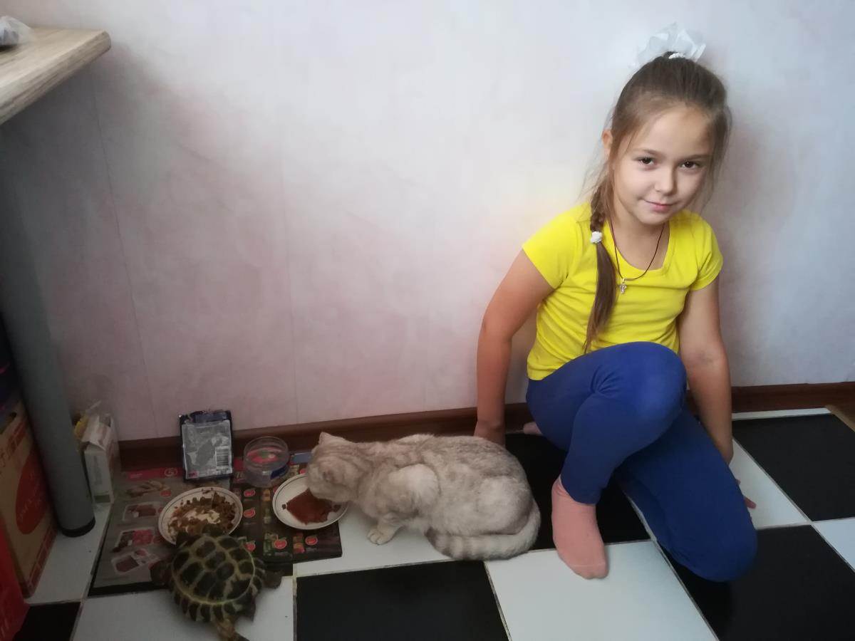 У меня есть домашние питомцы. Это кошка по имени Лилия и черепаха Маша. Они появилась у нас, когда я ходила в детский сад. Сейчас Лиле 5 лет, но несмотря на свой возраст, она, как и раньше, очень любит бегать и играть.