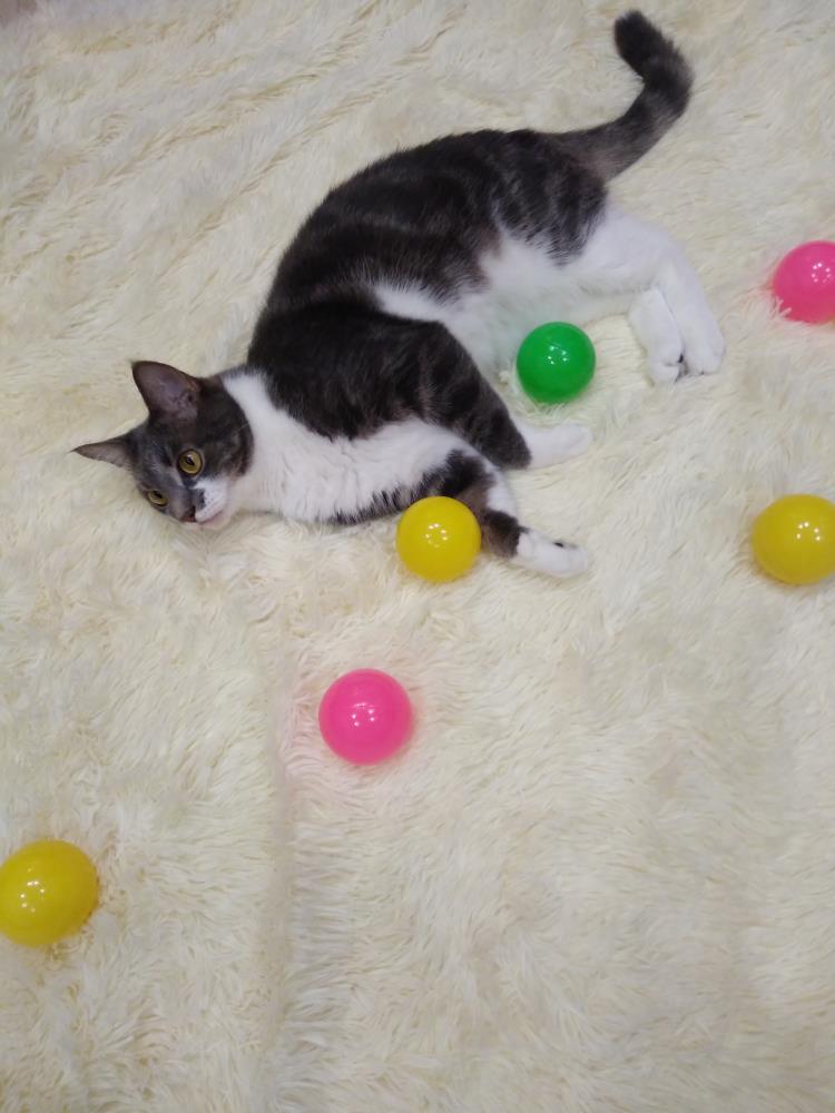 5 лет назад, когда мы шли около зоомагазина, услышали громкое мяуканье. Мы не удержались и зашли. Увидев маленького серого комочка в клетке, единогласно решили, что он наш. Этот шалунишка очень добрый, ласковый, умный и прикольный. Мы его все обожаем.