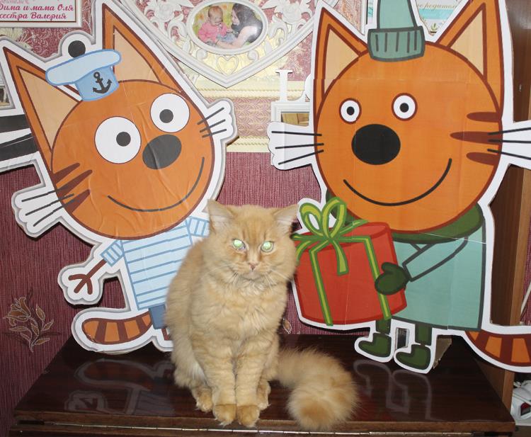 Это любимец нашей семьи - Рыжий. Он старше меня на два года, ему уже 13 лет! Он участвовал в разных фотоконкурсах. Был победителем конкурса «Символ года». Он не очень ласковый, но преданный кот. Рыжий очень красивый, пушистый. Мы его очень любим!