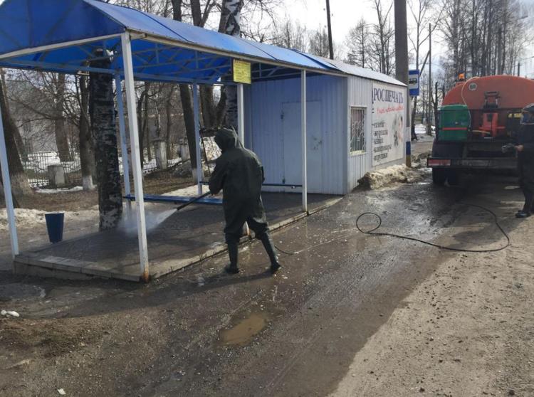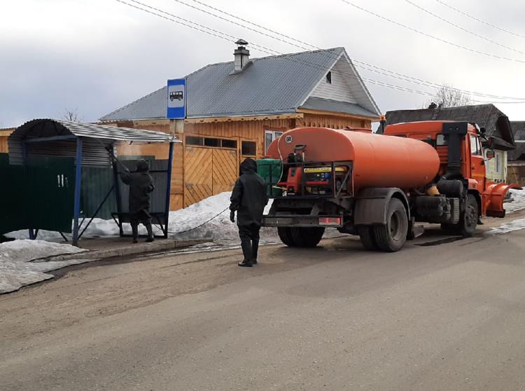 В целях проведения профилактических мероприятий против завоза и распространения коронавирусной инфекции Covid-19 на территории Омутнинска проводится обработка общественных территорий, мест массового пребывания людей дезинфицирующими средствами.
