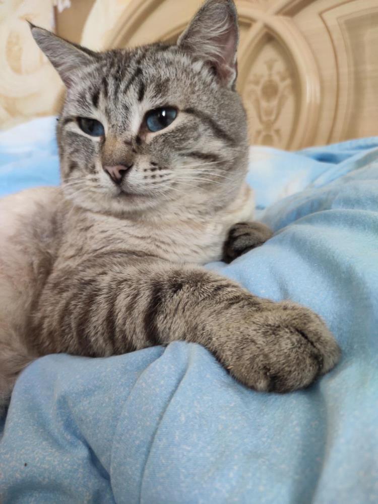 Наш кот Романтик очень красивый. Его глаза голубые, а шерсть очень мягкая. Кот оказался очень добрым и ласковым.