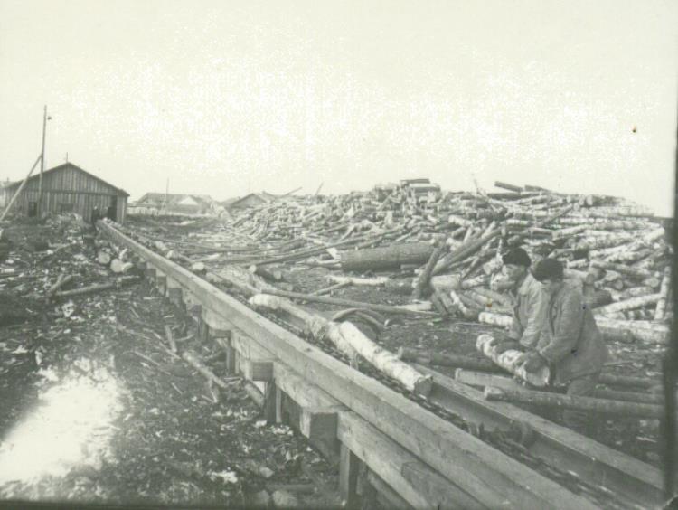 На лесозаготовках работали бригады из заводских цехов, но в основном специальные бригады, которые состояли из молодых женщин. «…Жили мы прямо на лесоучастке, в бараках по шестьдесят человек. Нам давали мастера, который объяснял, как валить елки, а некоторые бригады были без мастеров. Дадут ручную пилу, а мы молодые, неопытные, и не знаешь, как к этой елке подступиться. А когда она падает, все разбегаются кто куда. Нередко людей придавливало деревом. Задание на день – 10 кубометров. Распиливали на двух- или однометровые дрова. Было очень тяжело и голодно, особенно зимой: морозы – 40-45 градусов, а работали в лаптях…» (из рассказов Лысковой Нины Матвеевны и Устиновой Нины Александровны).