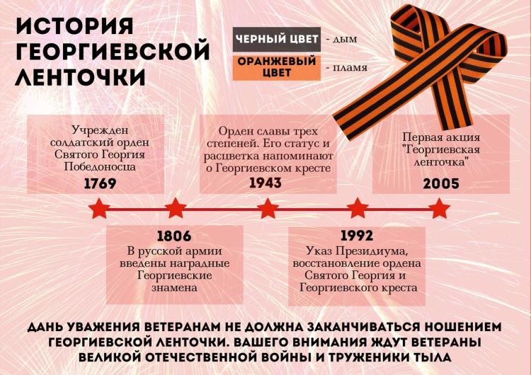 Этот символ — выражение нашего уважения к ветеранам, дань памяти павшим на поле боя, благодарность людям, отдавшим все для фронта. Всем тем, благодаря кому мы победили в 1945 году. Цвета войны – это цвет пламени, то есть — оранжевый, и дыма — черный.