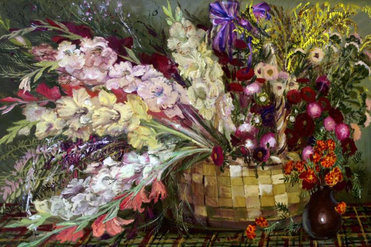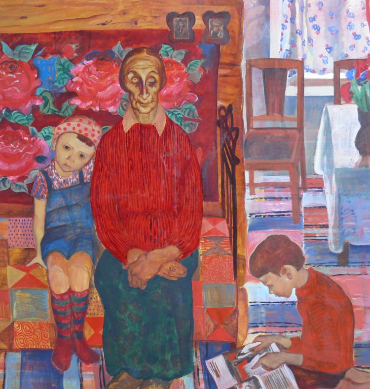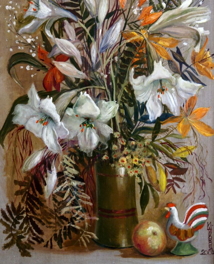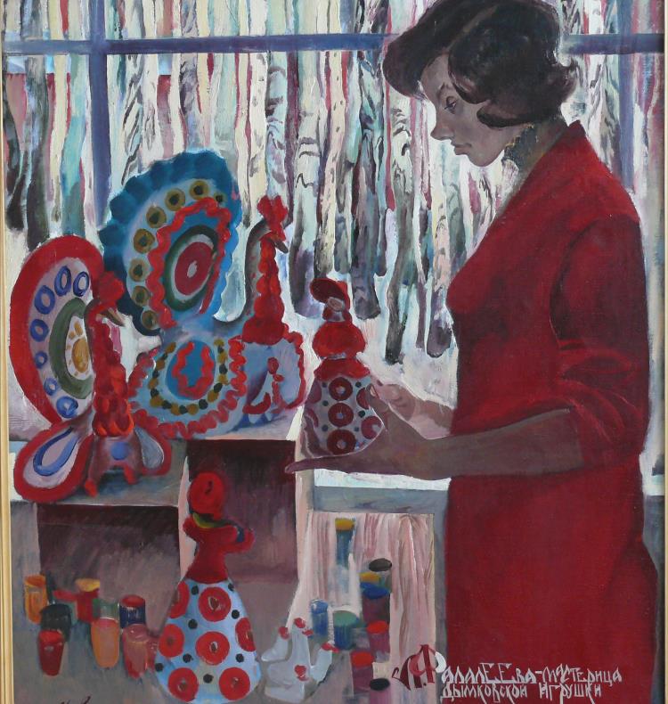 Особое место среди полотен занимают работы, посвященные хохломе, дымковской игрушке, косовской керамике, гжели. Она сумела постичь поэтическую красоту народных умельцев, воспевая гимн талантам земли русской.