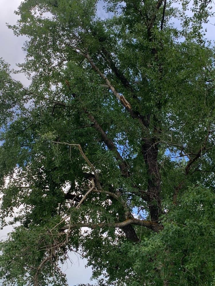 Уважаемые коммунальные службы, сохраните, пожалуйста, красоту и безопасность данного участка. Пора сделать красавцу-тополю внеплановую стрижку и частично освободить его пышную тяжелую шевелюру от сухих и ломких ветвей.