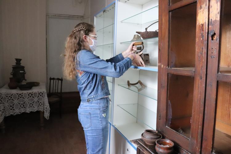 В настоящее время волонтеры занимаются расстановкой экспонатов в краеведческом отделе.