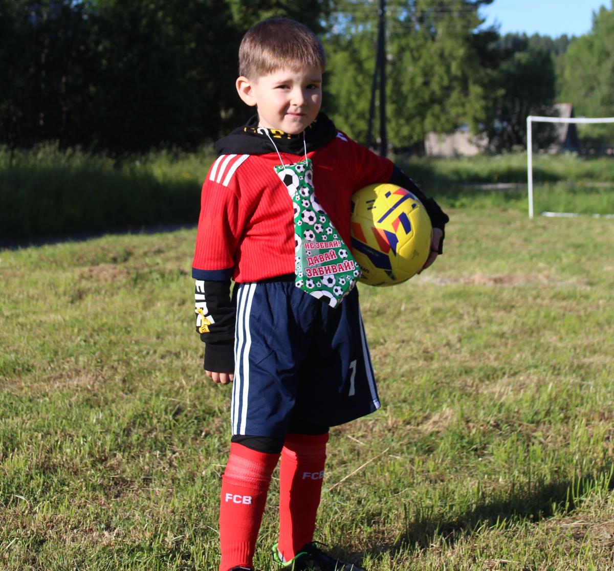 Мне исполнилось 5 лет. Я очень люблю играть в футбол. У меня есть настоящая форма футболиста и много мячей. Когда летом был мой день рождения, то мне подарили футбольные ворота, а все гости пришли в футболках красного и белого цветов. Мы дружно и весело играли в футбол. Это было очень здорово и классно!