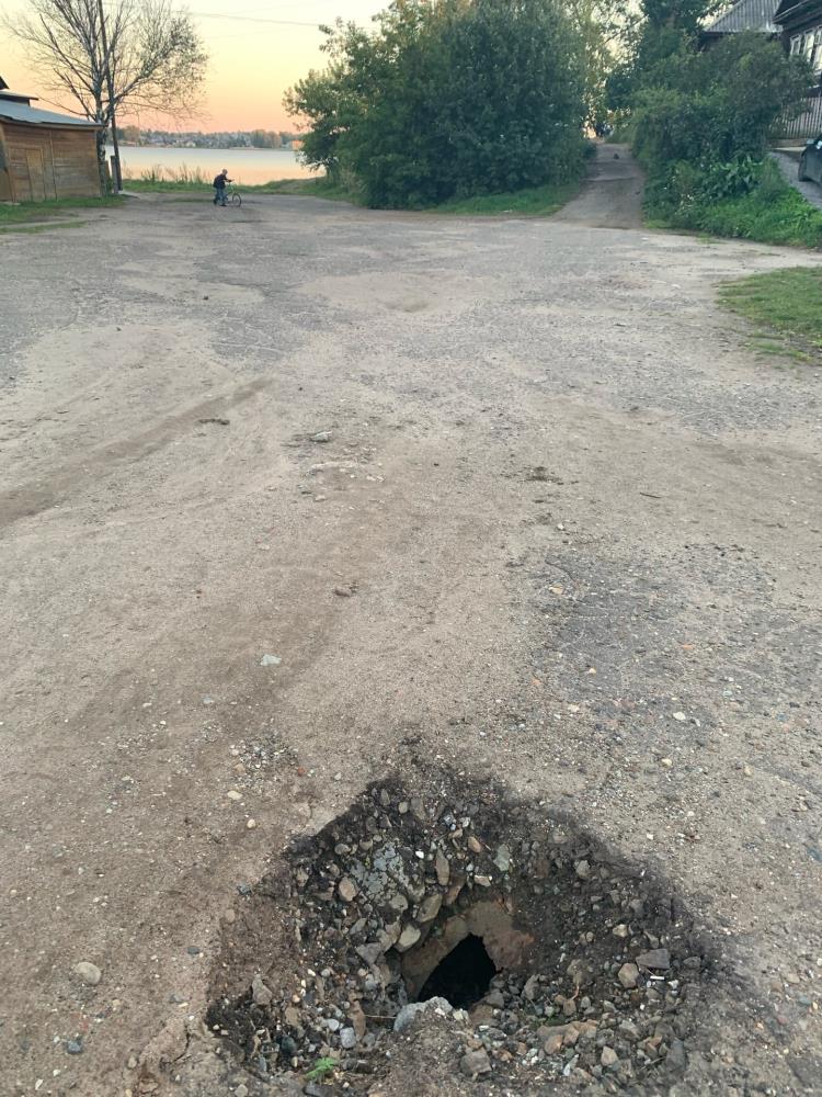 Прогнивает железная труба под дорогой, уходит под землю асфальт, осыпаются края… С завидным постоянством в темное время суток туда угождают колеса транспорта и ноги прохожих, которые еще не знали или забыли об обвале.