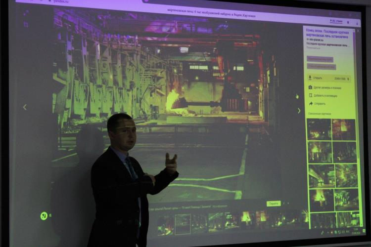 Металлург рассказал учащимся восьмого класса государственной школы Омутнинска о работе сталеплавильного цеха предприятия.