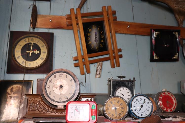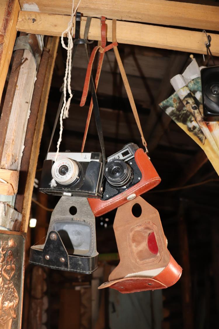 Отдельно расположены предметы советской эпохи: проигрыватели, радиолы, несколько фотоаппаратов и телефонов, рабочий кассетный магнитофон и два десятка виниловых пластинок. Гостеприимный хозяин ловко завел аппарат, и музыка зазвучала с характерным потрескиванием. На стене кухни богатый выбор часов – настенные с боем, с кукушкой и маятником.