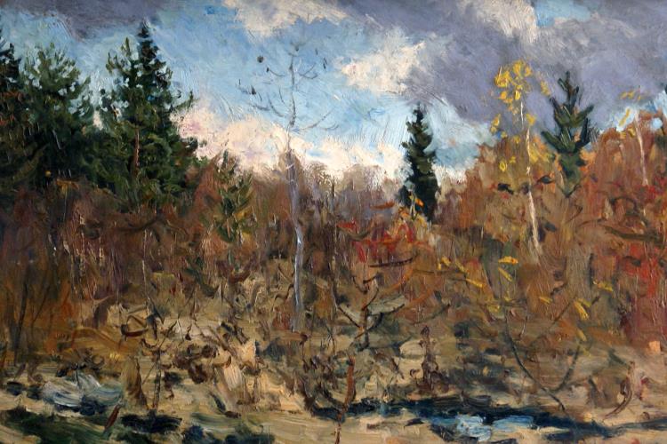 Художник вступает в музыкальный диалог с холодными низкими облаками зимы, с нарядными кружевными деревьями, украшенными серебристым инеем, с белыми заснеженными полями. Он передает яркую палитру красок осеннего леса, показывает зрителю такое состояние природы, когда вся красота мгновенно может быть унесена порывами ветра.