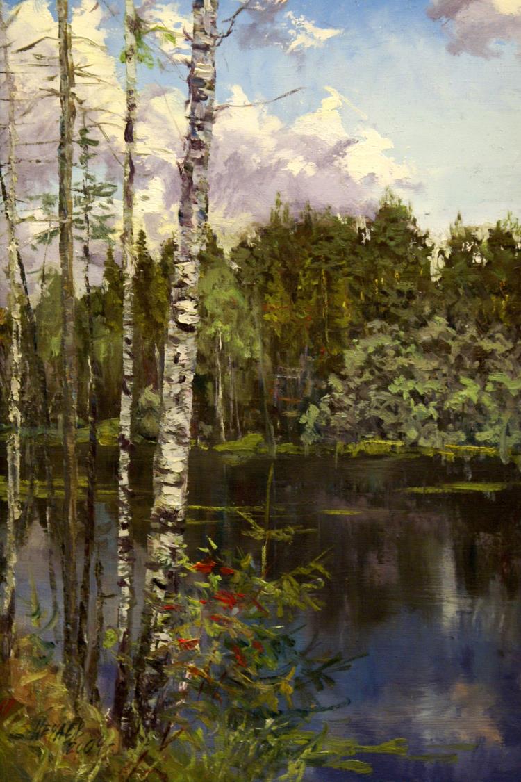 Яркое весеннее солнце, тишина и спокойствие летнего вечера, голубое небо, речные перекаты вдохновляют художника, создают неиссякаемый родник творчества. Живописец работает быстро, легким, воздушным мазком. Во всех произведениях слышишь ощущение гармонии, неразрывную связь человека и природы. В большинстве пейзажей присутствует мягкий лиричный колорит, который помогает понять красоту, раскрыть духовный мир героя.