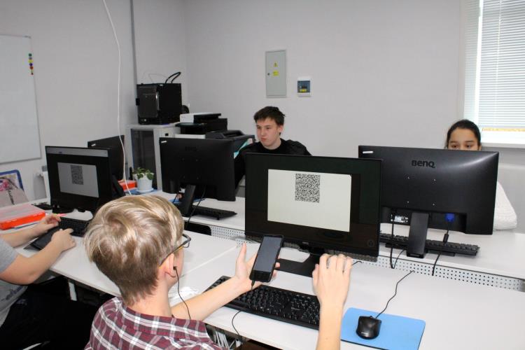Наводя камеру мобильного телефона на QR-коды, школьники решали ребусы.
