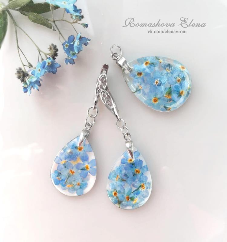 «Буквально полгода назад на просторах интернета я увидела фотографии украшений с застывшими внутри растениями. Меня очень заинтересовало, как и из чего они сделаны. Вдохновившись, захотела повторить», - делится Елена Владиславовна.