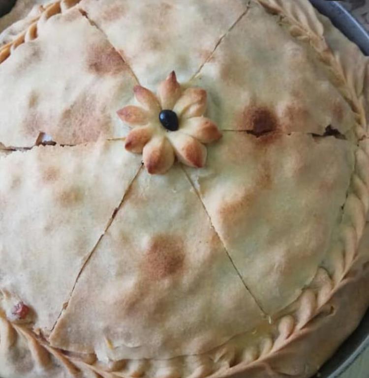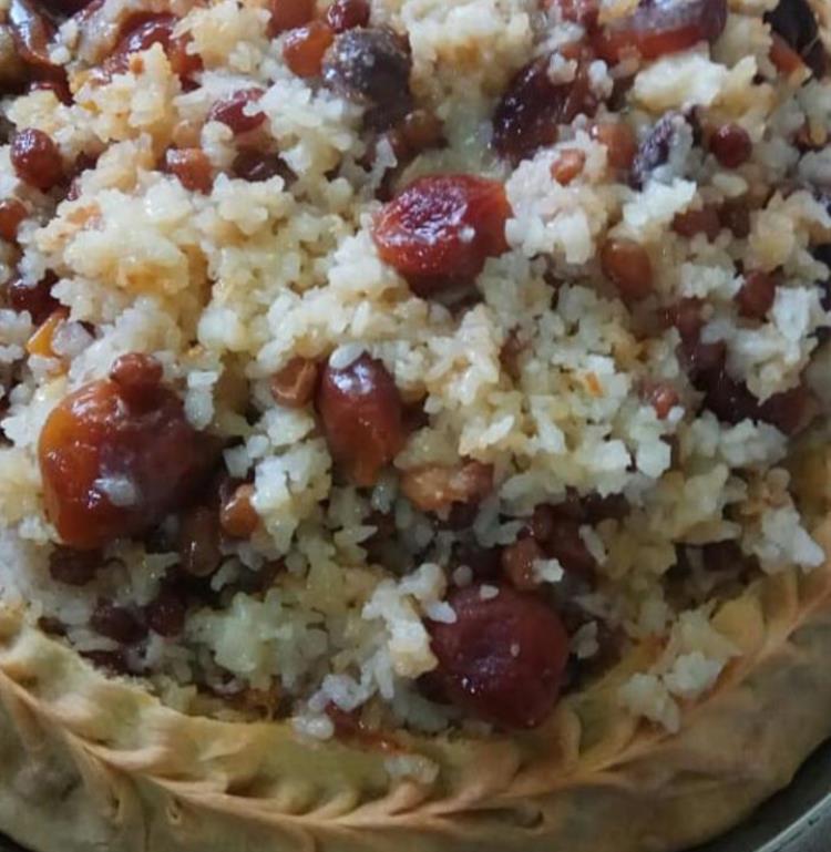 Одно из главных угощений на больших торжествах – губадия – круглый пирог из дрожжевого или пресного теста с многослойной начинкой из ксушеного творога, отварного риса, мясного фарша с пассированным репчатым луком, рубленого яйца, распаренного изюма, кураги, чернослива и урюка.