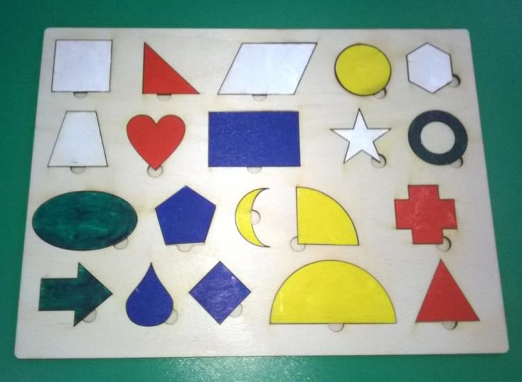 Деревянные игры-вкладыши сначала были отрисованы при помощи графического редактора CorelDRAW, а затем вырезаны с помощью лазерного гравировщика.
