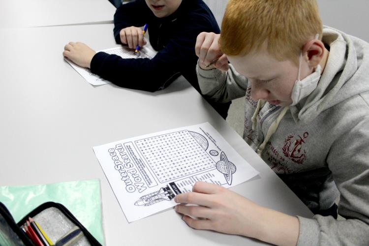В ходе игры участники искали слова на космическую тематику в большой таблице с буквами. Вырезали, согласно схеме, ракету, отправлялись в путешествие к звездам и даже придумывали название собственной планеты. В финале ребята состязались в викторине на знание Солнечной системы.