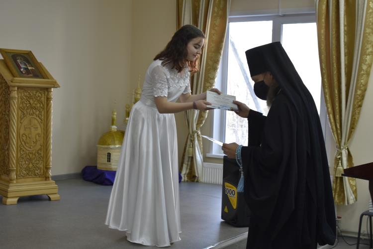 Обрели свои награды участники епархиального конкурса «Красота Божьего мира»: за первое место – Диана Заграбян, ДШИ Омутнинска (работа «Монастырь на Руси», педагог-наставник Е.Э. Чадаева); за второе место – Виктория Подчезерцева, (работа «Осенний собор», педагог-наставник Е.Э. Чадаева); за третье – Анна Носкова (работа «Божья благодать», педагог-наставник Е.Э. Чадаева); лауреаты Гран-при в отдельных номинациях в своих возрастных группах районного творческого конкурса «За правое дело – сражайся смело»: Евгения Ожегова (ВСПК «Гвардия», руководитель О.Н. Гущина, Иван Исупов, (ДШИ, педагог-наставник Е.Э. Чадаева); Елизавета Шихарбеева (воскресная школа при Свято-Троицком соборе г. Омутнинска, педагог-наставник Е.Э. Чадаева); Всеволод Журавлев (ДШИ п. Восточный, педагог-наставник Е.Л. Клыгина); Анна Шитова (ВСПК «Росгвардия», руководитель Д.Л. Лалетин); Арина Смирнова (ВСПК «Росгвардия», руководитель Д.Л. Лалетин).