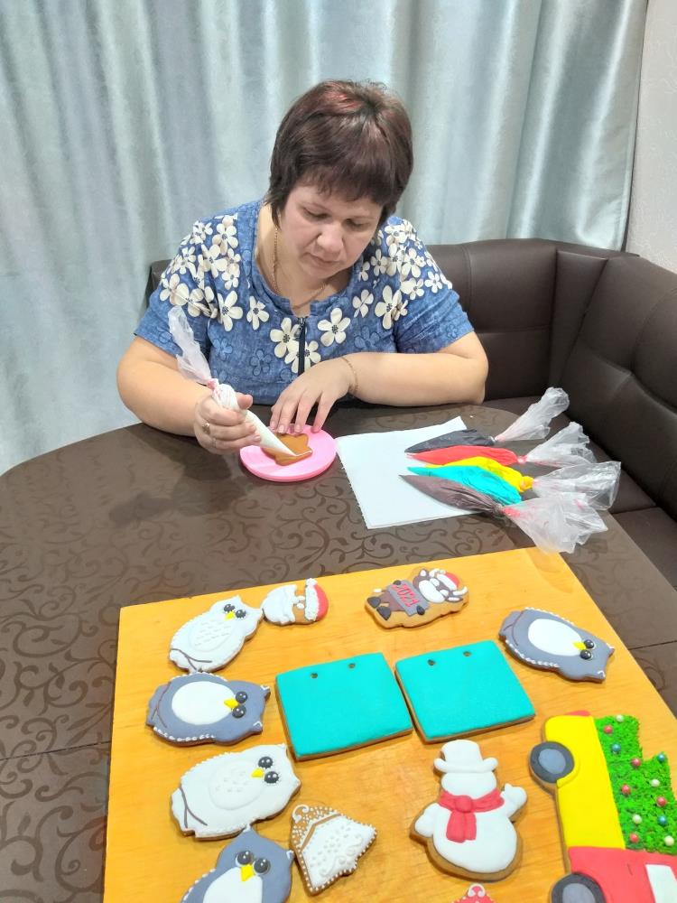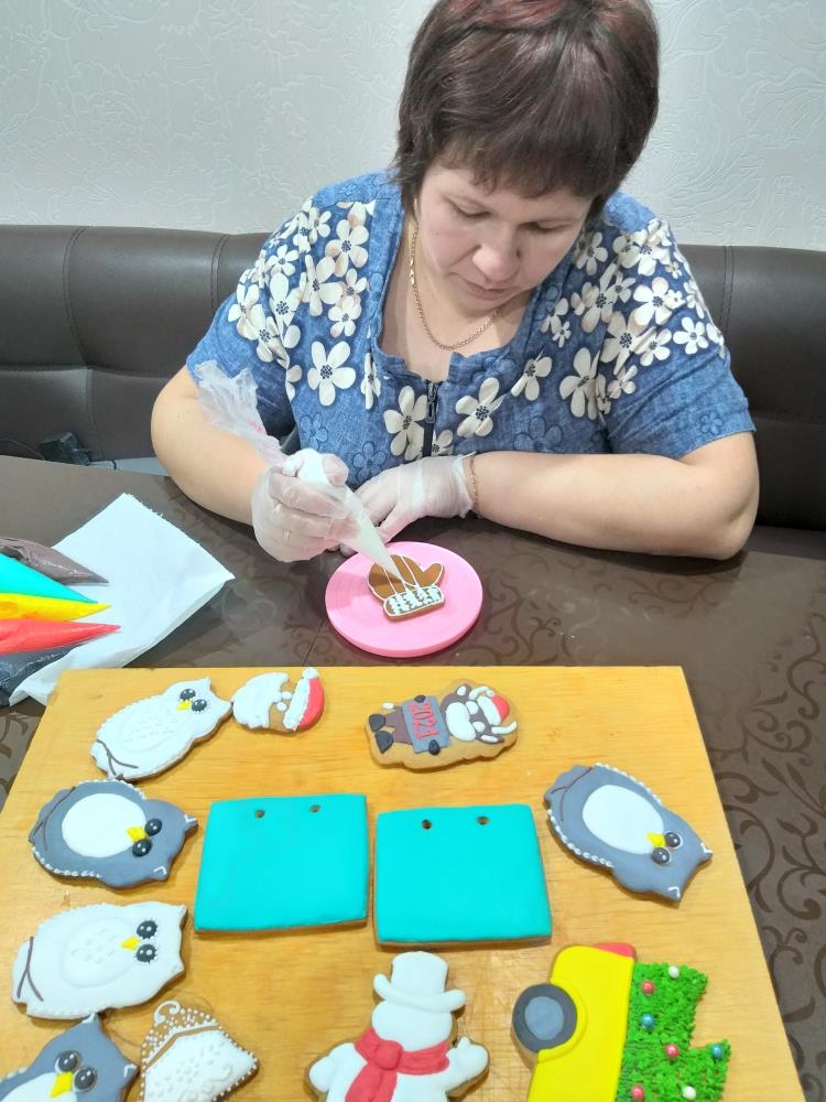 Украшает изделия, расписывая специальной цветной глазурью – айсингом, которую необходимо правильно приготовить. При разрисовке фигур результат с каждым разом все лучше – и это вдохновляет, а пряники получаются не только невероятно вкусные, но и красивые – рисунки на выпечке смотрятся не хуже, чем на бумаге.