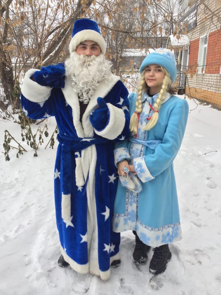 Волонтеры в образе Дедушки Мороза и Снегурочки поздравили детишек с наступающим Новым 2021 годом, пожелали здоровья, удачи, счастья и вручили подарки и открытки.