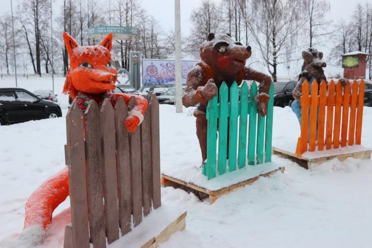 На главной площади города установлены персонажи из мультфильма «Волк и теленок».
