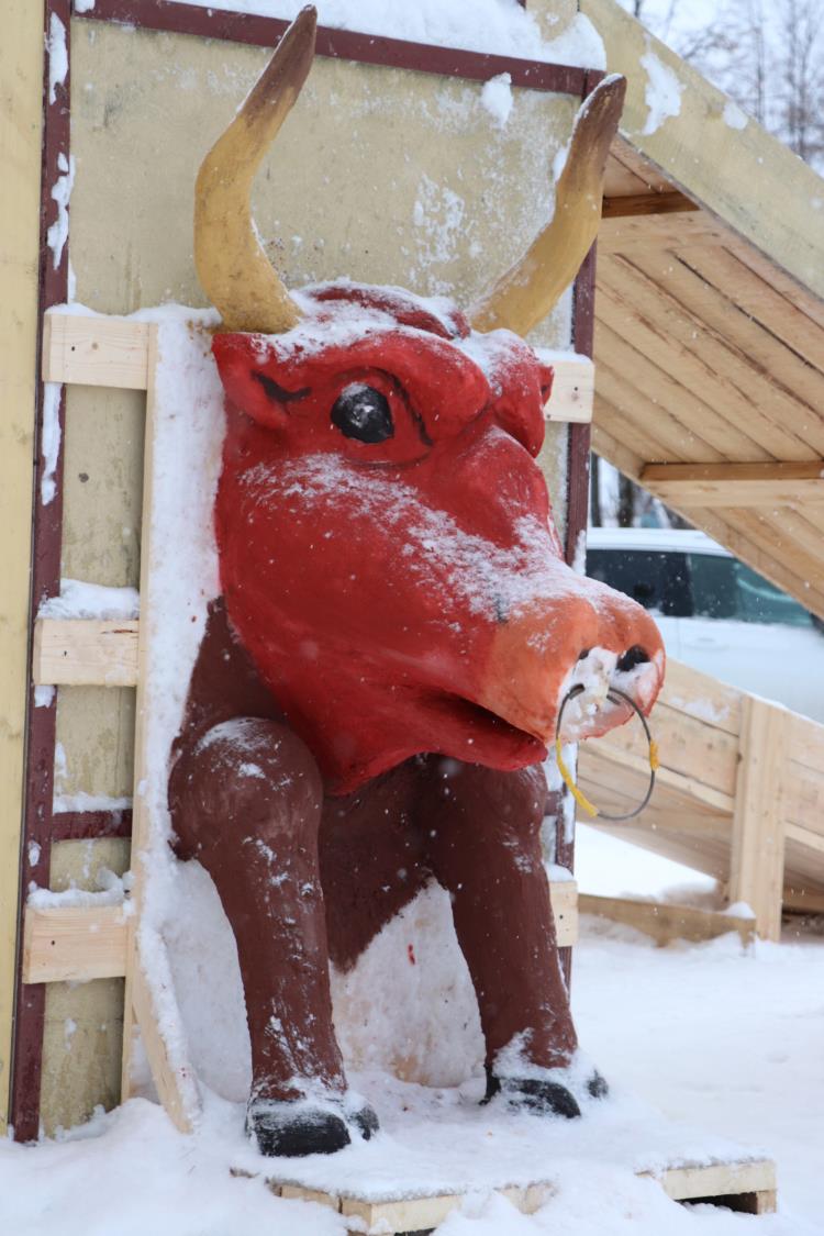 Представители цехов стальных фасонных профилей создали из снега символов года, работники цеха машиностроения – бычка и кабана. Мастера из службы технического контроля слепили волка, из сортопрокатного цеха – медведя. Лису сделали работники энергоцеха.