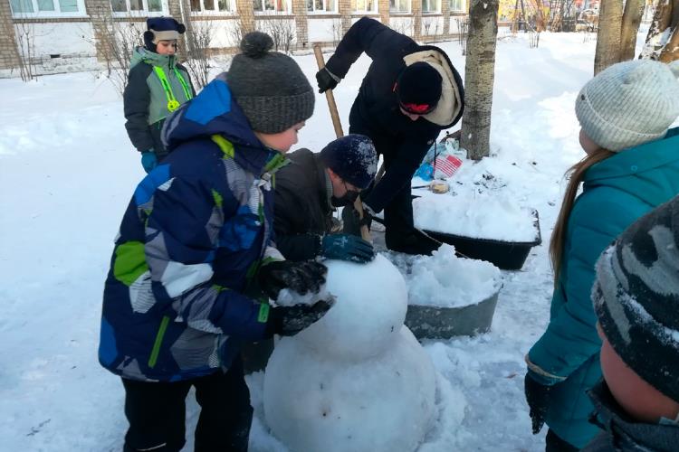 В выходные армия снеговиков шестой городской школы пополнилась еще четырьмя героями, за лепку которых школьников наградят вкусными тортами.