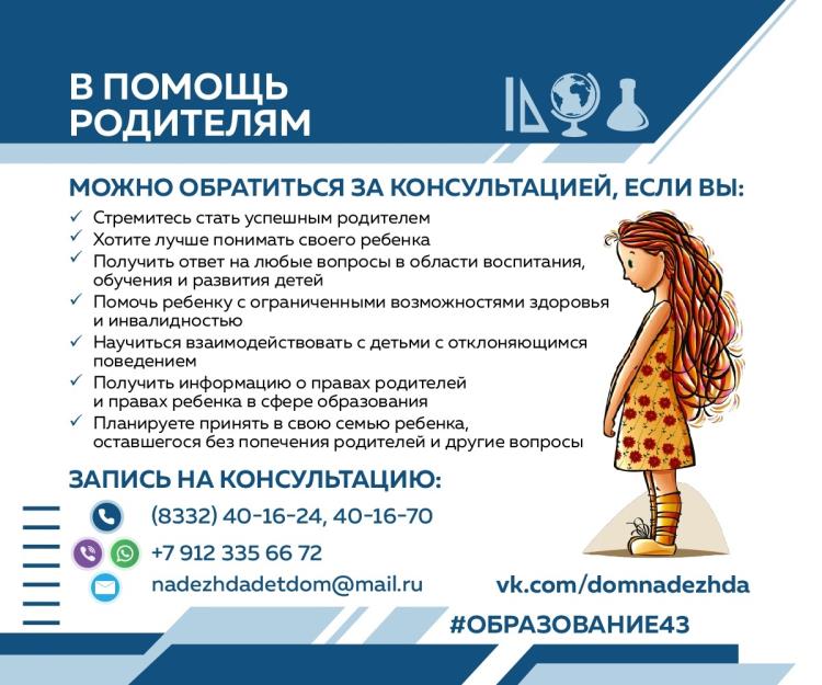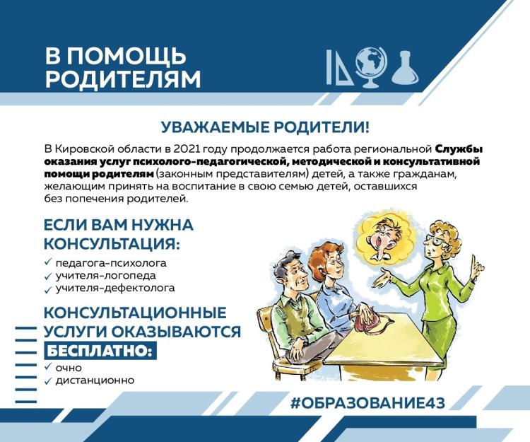 В Кировской области продолжается работа региональной Службы оказания услуг психолого-педагогической, методической и консультативной помощи родителям (законным представителям) детей, а также гражданам, желающим принять на воспитание в свою семью детей, оставшихся без попечения родителей.