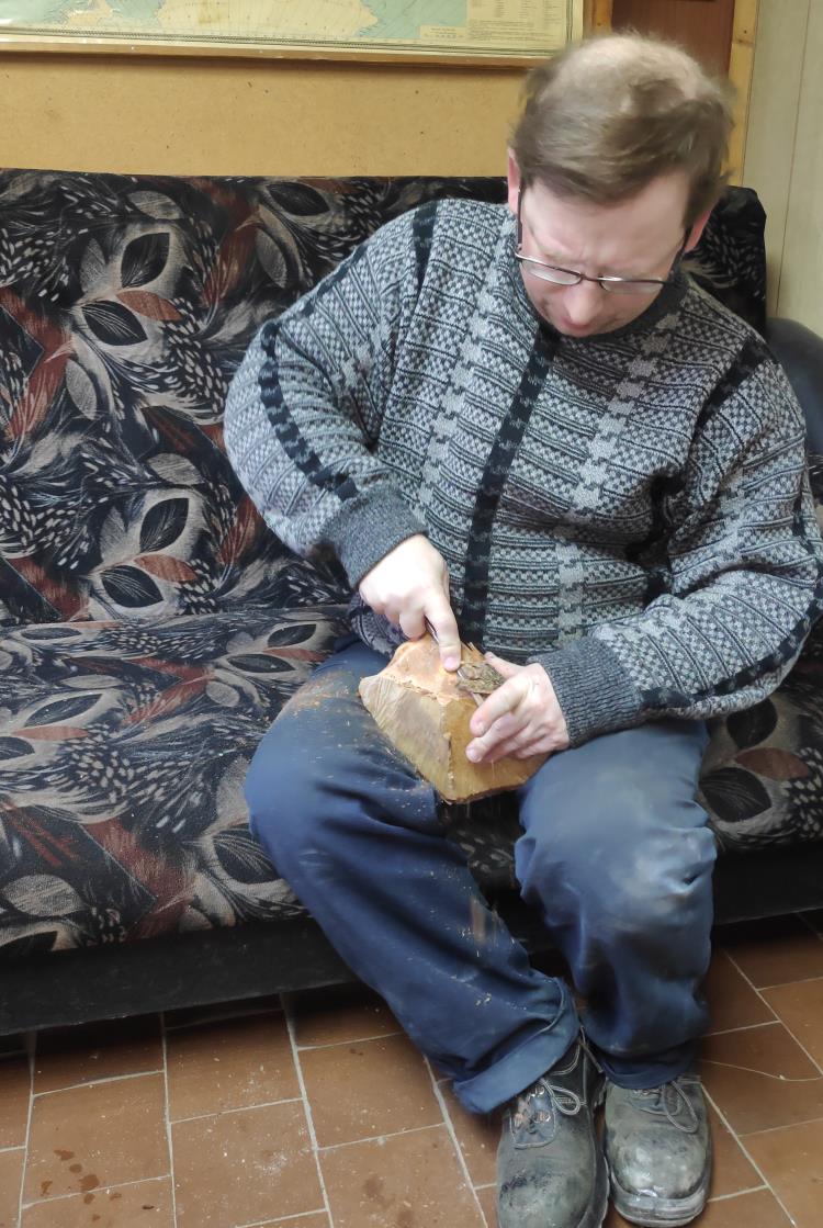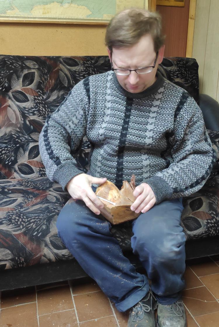 После сбора его нужно подсушить. Никакой специальной технологии у Сергея Мильчакова нет. Главное – следить, чтоб сырье не загнило. Обрабатывается кап лучше всего, пока он еще слегка влажный, вяленый. Для этого мастер использует электроинструменты. Изогнутые стамески и резцы идут в ход, только если изделие декорируется – фигурой ящерицы, например.