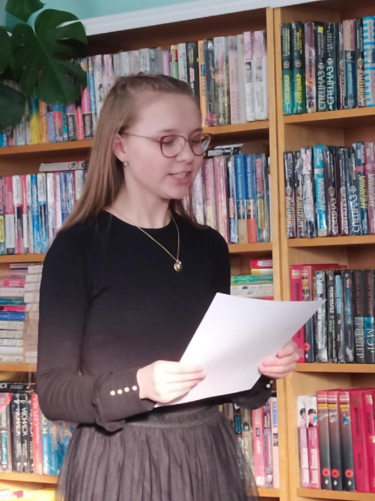 В читальном зале библиотеки состязались учащиеся 11 класса местной школы Анастасия Кашина, Диана Шуплецова, девятиклассницы Анна Салтыкова и Юлия Костина.