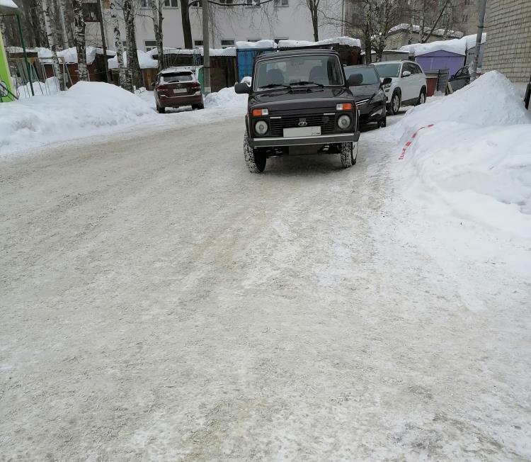 Несанкционированная парковка систематически возникает на придомовой территории по улице Карла Либкнехта. Омутнинцы вынуждены передвигаться по проезжей части, так как автомобили заняли весь тротуар.