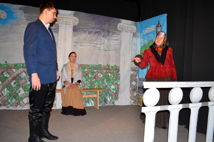 Напомним, что в спектакле задействованы как уже полюбившиеся омутнинцам самодеятельные актеры, так и те, кто выйдет на сцену впервые. В числе известных местному зрителю артистов Дмитрий Юкляевский, Сергей Резников, Маргарита Болховских, Ярослав Некрасов, Марина Губина, дебютной постановка стала для Сергея Блинова, Елены Овечкиной и Александры Лусниковой. Кстати, Александра выступила художником при изготовлении декораций: с ее легкой руки появились красочные задники для сцены.