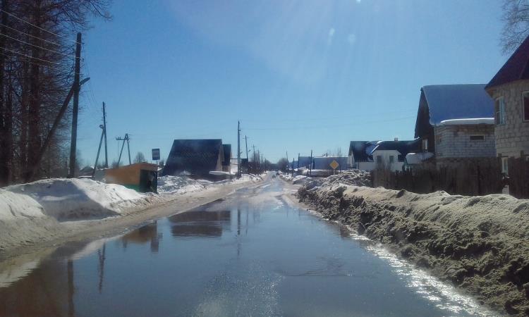 В межсезонье в Омутнинске есть и другая проблема. Из-за проезжающего рядом транспорта лужи возле остановочных павильонов периодически выходят из берегов.