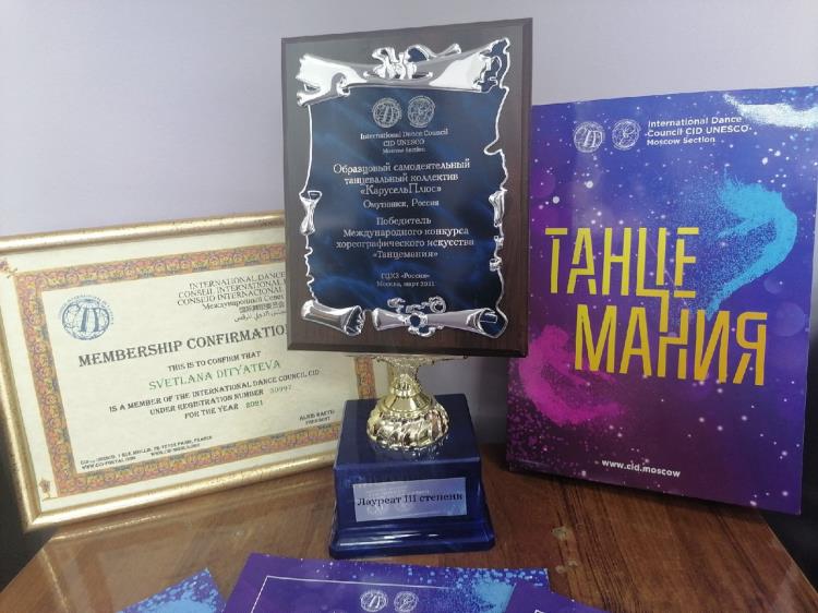 Светлана Дитятьева получила сертификат и почётный титул члена Международного Совета по танцу CID c/o UNESCO, каждый участник «КарусельПлюс» получил именной диплом Лауреата и диплом Победителя проекта.